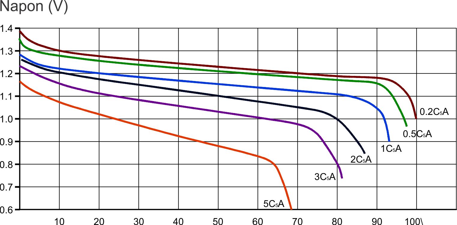 Vreme pražnjenja nazivnom strujom I = 0,2 C5A do 1,0 V/ćeliji i traje najmanje 5 časova.